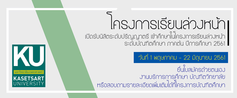 เปิดรับนิสิตระดับปริญญาตรี เข้าศึกษาในโครงการเรียนล่วงหน้า ระดับบัณฑิตศึกษา ภาคต้น ปีการศึกษา 2561