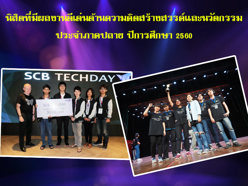 ขอแสดงความยินดีกับนิสิตที่ได้รับรางวัล นิสิตที่มีผลงานดีเด่นด้านความคิดสร้างสรรค์และนวัตกรรม ประจำภาคปลาย ปีการศึกษา 2560