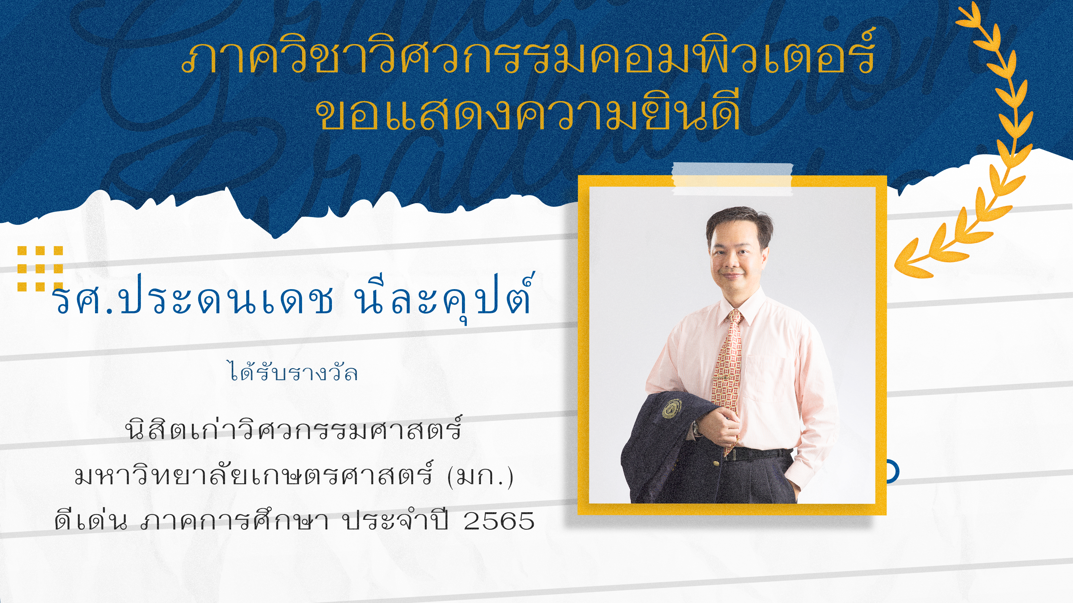 ขอแสดงความยินดีกับ รศ.ประดนเดช นีละคุปต์ ที่ได้รับรางวัลนิสิตเก่าวิศวกรรมศาสตร์ มหาวิทยาลัยเกษตรศาสตร์ (มก.) ดีเด่น