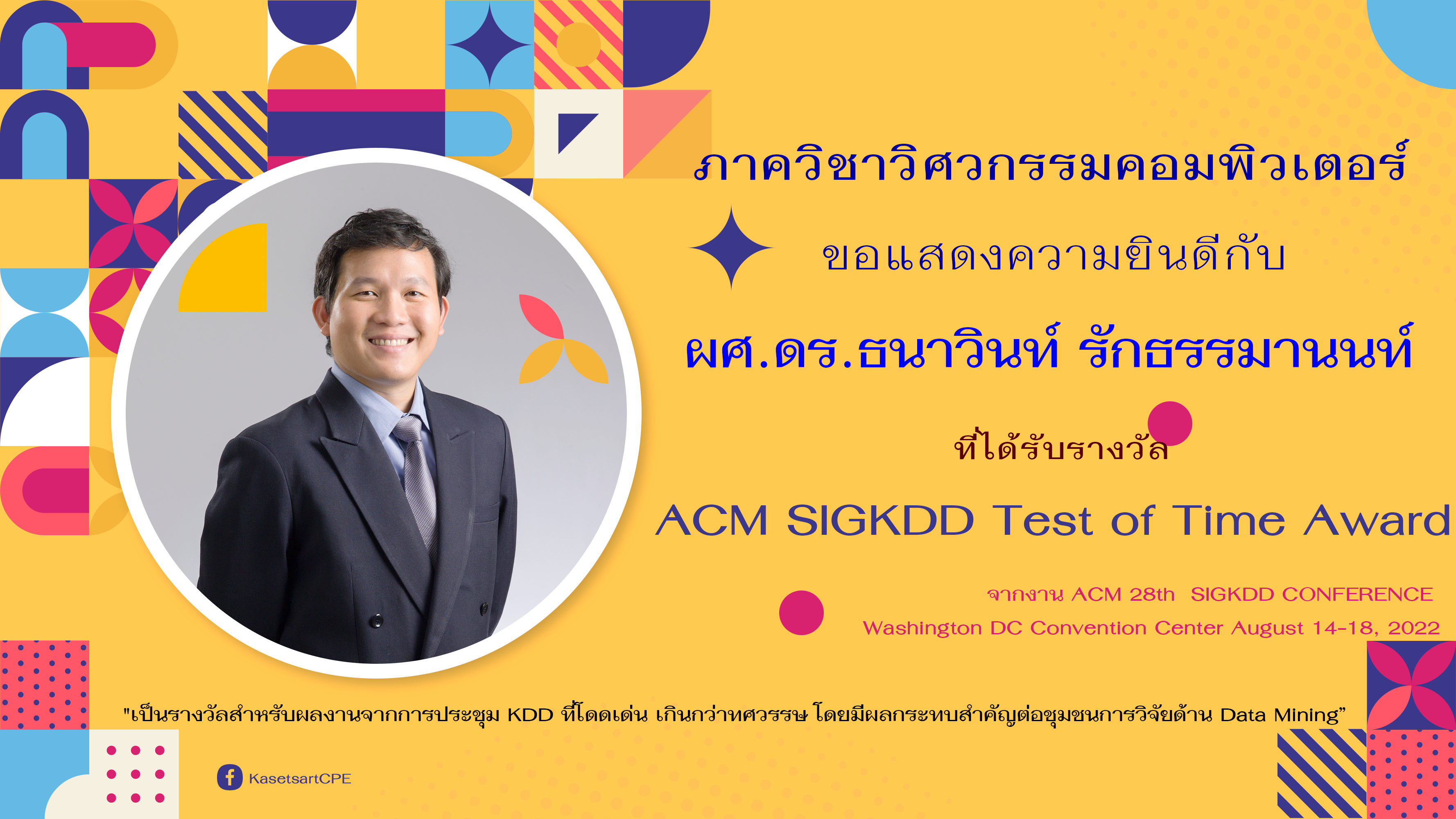 ภาควิชาวิศวกรรมคอมพิวเตอร์ ขอแสดงความยินดีกับ ผศ.ดร. ธนาวินท์ รักธรรมานนท์ ที่ได้รับรางวัล ACM SIGKDD Test of Time Award