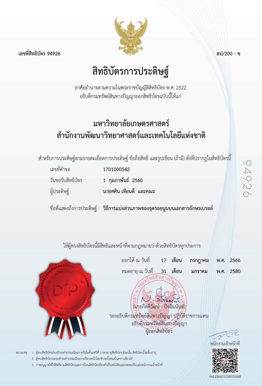 ขอแสดงความยินดี รศ.ดร.อัศนีย์ ก่อตระกูล ได้รับการจด สิทธิบัตรการประดิษฐ์