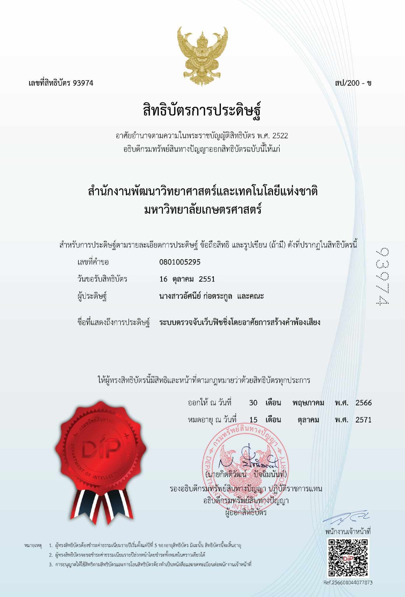ดร.ศศิน เทียนดี ดุษฏีบัณฑิต จากภาควิชาวิศวกรรมคอมพิวเตอร์ ได้รับการจด สิทธิบัตรการประดิษฐ์ จากผลงานวิทยานิพนธ์