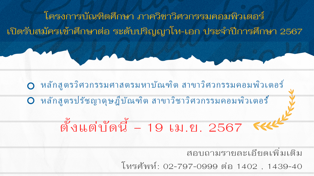 เปิดรับสมัครเข้าศึกษาต่อ หลักสูตรปริญญาโท-เอก ประจำปีการศึกษา 2567 (รอบ2)